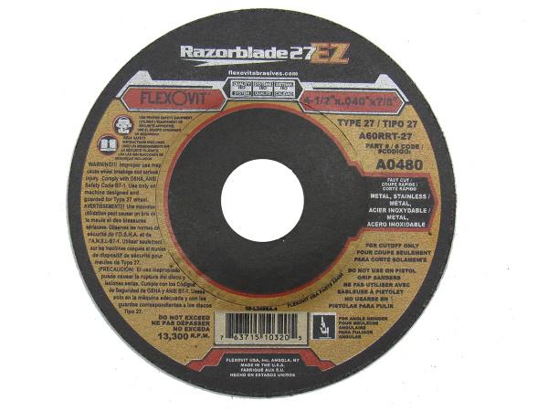 A0480 Flexovit® 4-1/2" x .040" x 7/8" RAZORBLADE 27® EZ Cut-Off Wheel