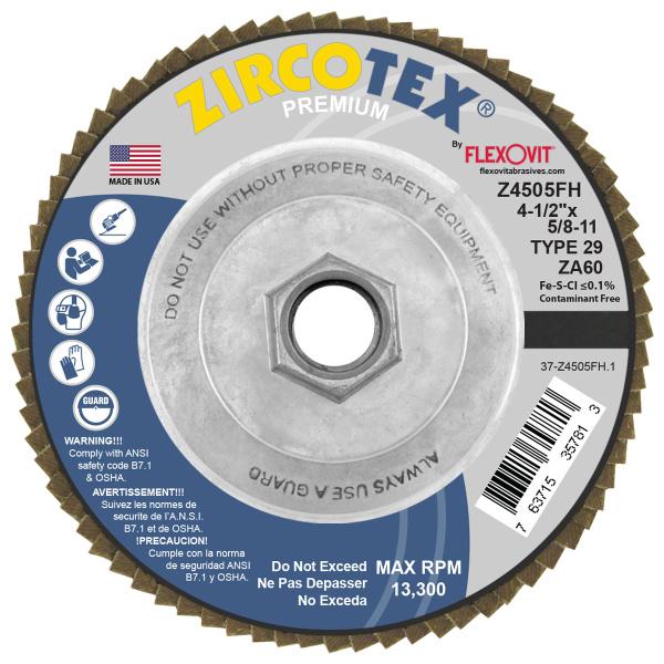 Flexovit® ZIRCOTEX® Z4505FH 4-1/2" x 5/8"-11 60 Grit Type 29 Spin-on Flap Disc