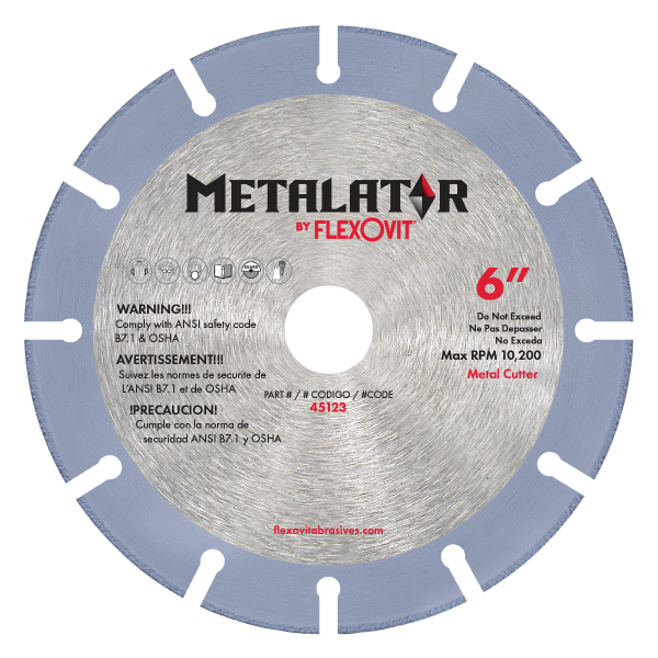 The Flexovit® 45123 METALATOR™ Diamond Blade is engineered to deliver unmatched cutting speed, consistency, and durability for metalworking professionals. With a 6-inch diameter, a .050-inch thickness, and a 7/8-inch arbor, this X0130P blade is designed for right-angle grinders and offers a superior alternative to traditional bonded abrasive cut-off wheels—lasting dramatically longer while providing safer, more controlled cutting.