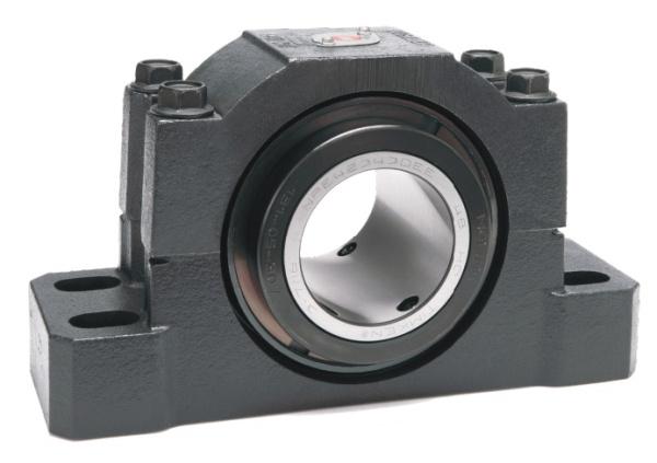 The split pillow block housing allows for quick servicing and bearing replacement without the need to remove the shaft. This reduces downtime and increases productivity in field maintenance scenarios.